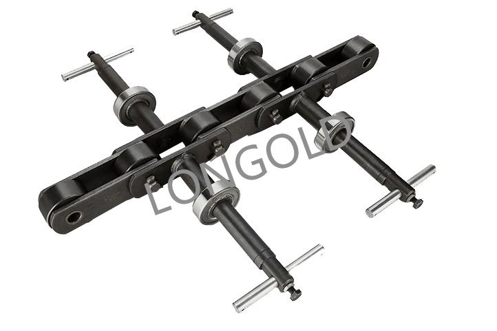 輸送鏈條是在各類箱包及托盤等件貨的輸送上,以及一些小件及不規(guī)則物品的輸送上。不過,對于單件重量較大的物品,也是可以進行輸送的,因為它能夠承受較大的沖擊載荷。